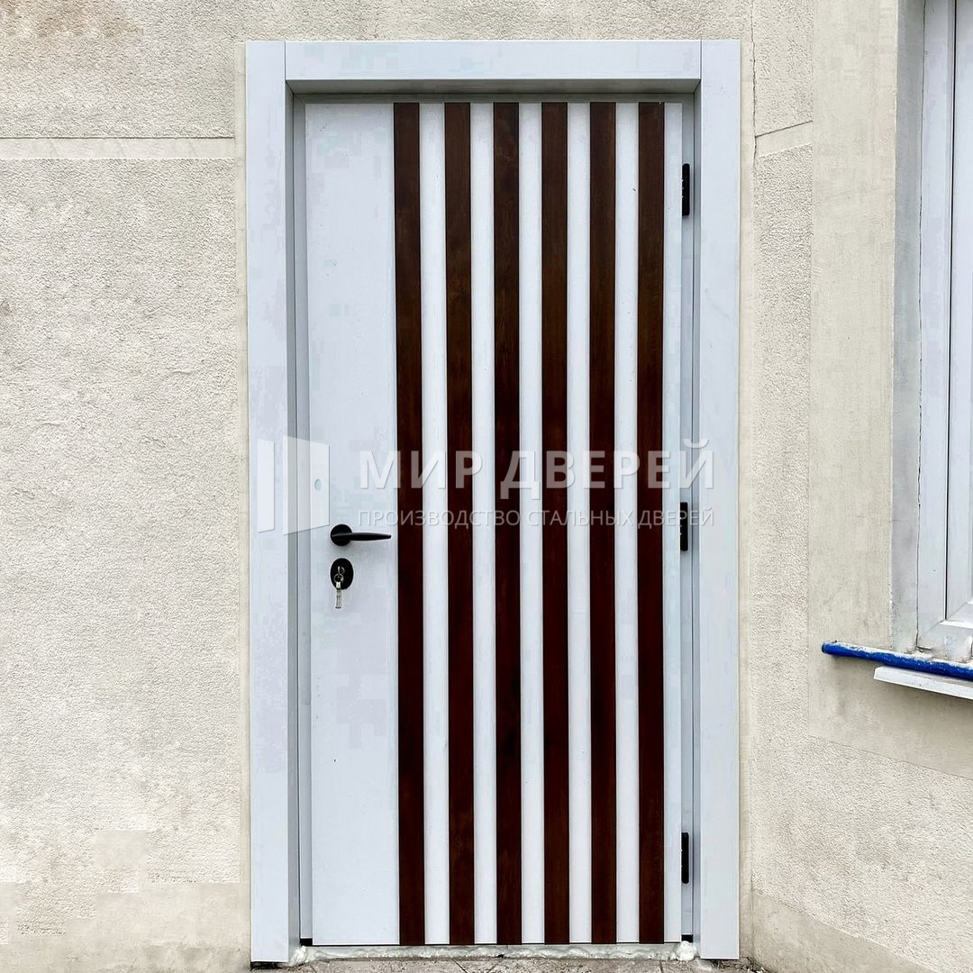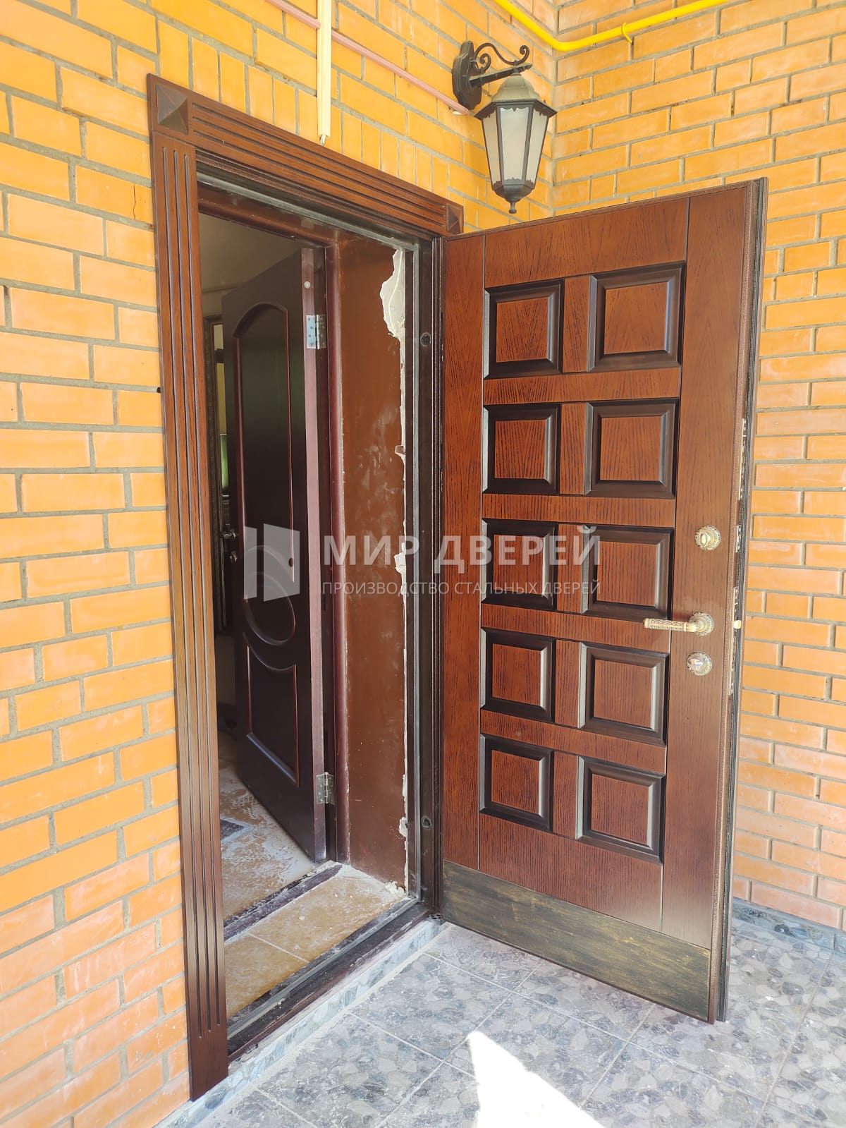 Для тех, кто ищет надежность в сочетании с современным стилем, входная металлическая дверь в квартиру №3 станет оптимальным выбором. Конструкция выполнена из прочной профильной трубы 50х25 мм с дополнительными ребрами жесткости 40х25 мм и металлическим листом толщиной 2 мм, что гарантирует долговечность и стойкость к нагрузкам. С обеих сторон полотно облицовано панелями МДФ ПВХ, которые придают эстетичность и позволяют подобрать оттенок от строгого черного или коричневого до светлого или белого, подстраивая дверь под любой интерьер. Модель оснащена двумя надежными замками турецкого производителя Kale Kilit: сувальдным 257 L с тремя ригелями и цилиндровым 252 R с системой 3+1 ригель, что соответствует третьему классу защиты и обеспечивает высокий уровень безопасности. Два контура резинового уплотнителя защищают помещение от сквозняков и посторонних запахов, а по желанию можно добавить шумо- и теплоизоляцию, зеркало, стеклопакет или кованые элементы. Возможность выбора направления и типа открывания, а также замены замков на премиальные или электронные модели делает эту дверь универсальным решением для квартиры, коттеджа или офиса.
