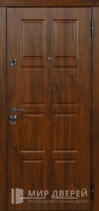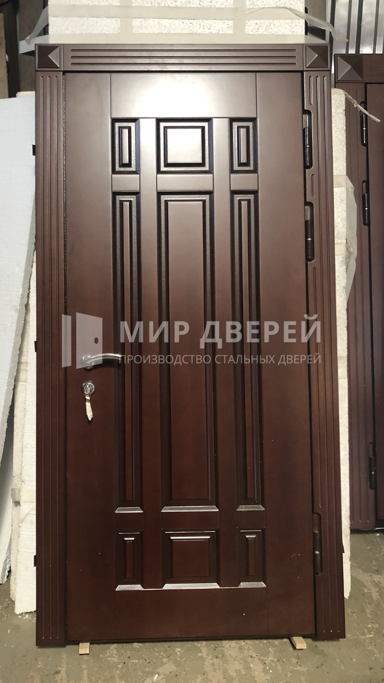 Эта модель создана для комфортного и безопасного проживания, когда важна не только защита, но и тишина в доме. Внешняя и внутренняя отделка выполнена из МДФ с ПВХ покрытием в темных оттенках венге, коричневого и черного цветов, благодаря чему дверь выглядит стильно и гармонично вписывается в современные интерьеры. Металлический каркас из профильных труб с ребрами жесткости и стальной лист толщиной 2 мм обеспечивают прочность конструкции и надежную защиту от взлома. Именно поэтому звукоизоляционная входная дверь в квартиру №67 востребована как в жилых помещениях, так и в офисах или частных домах. Для герметичности применяются два контура резинового уплотнителя, которые улучшают изоляционные свойства и препятствуют проникновению сквозняков. Конструкция дополнена двумя замками российских производителей — сувальдным Просам и цилиндровым Мосрентген, что повышает уровень безопасности. При необходимости дверь можно укомплектовать дополнительной шумо- и теплоизоляцией, а также оснастить зеркалом, стеклопакетом, коваными элементами или видеодомофоном.