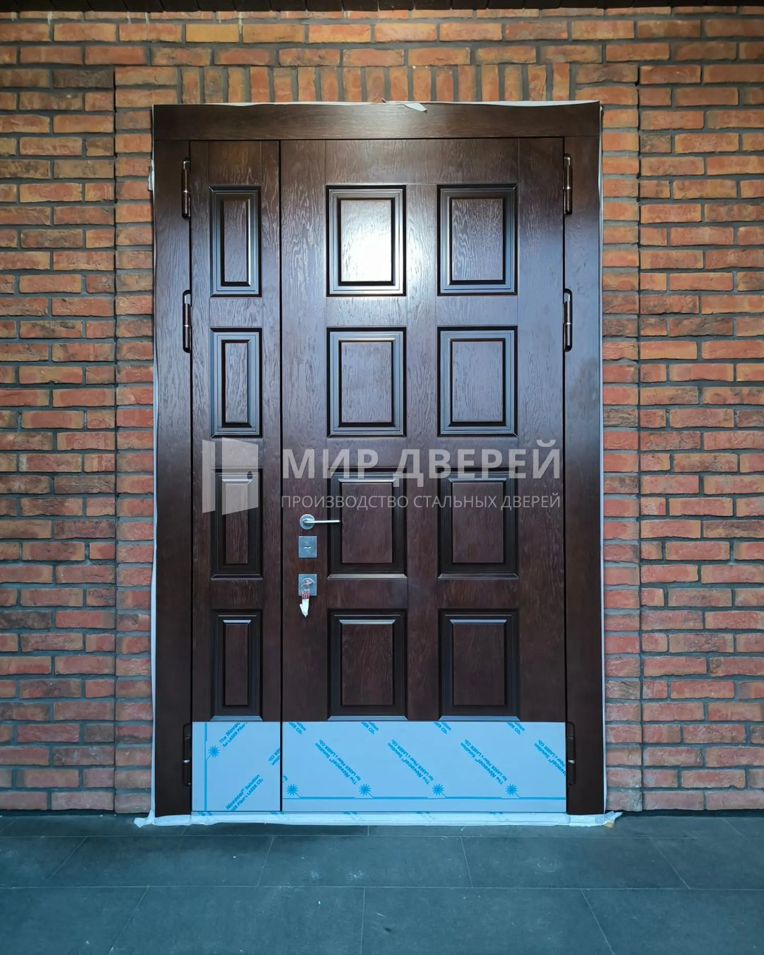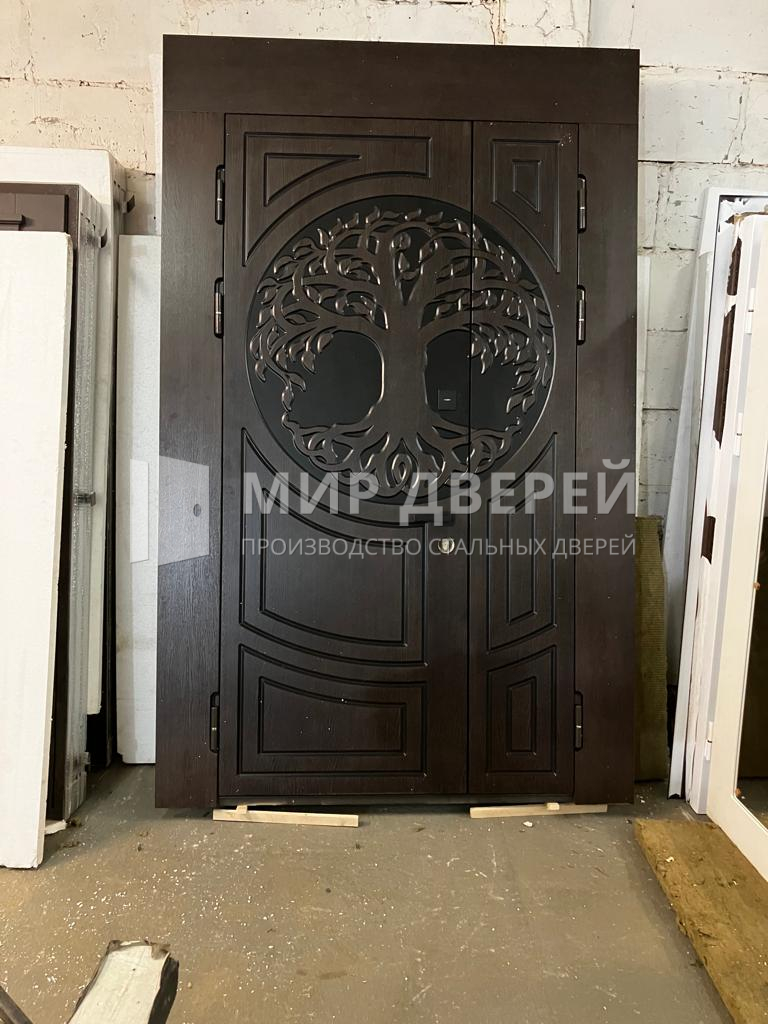 Полуторная коттеджная дверь с резьбой и противосъёмными штырями №107 — это идеальное решение для частных домов и коттеджей, где требуется не только красота, но и функциональность. Оснащенная противосъемными штырями, эта дверь обеспечивает повышенную защиту от взлома. Изготовлена из массива дерева, она не только великолепно выглядит, но и способствует сохранению тепла в доме, несмотря на отсутствие шумоизоляционного слоя, что можно дополнительно усилить, выбрав опцию установки минваты или пенопласта.